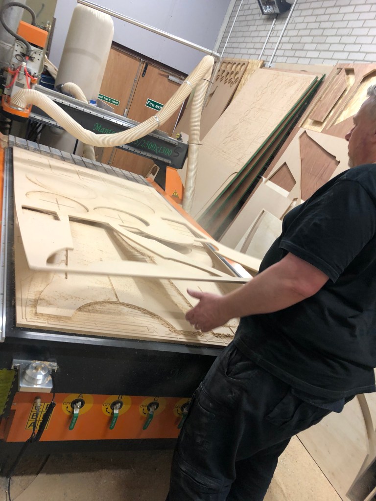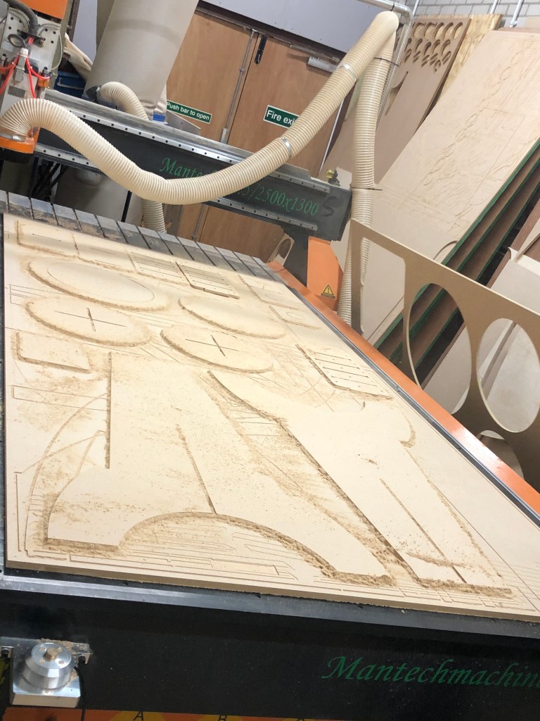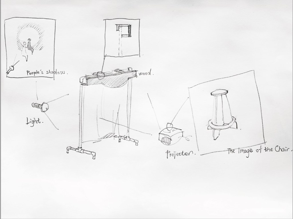 This is the third tutorial with my tutor. I have already make one in the wood work shop. And I first draw every different shape of wood in CAD and then went to cut the wood. Also my red curtain is ready with a little pocket.